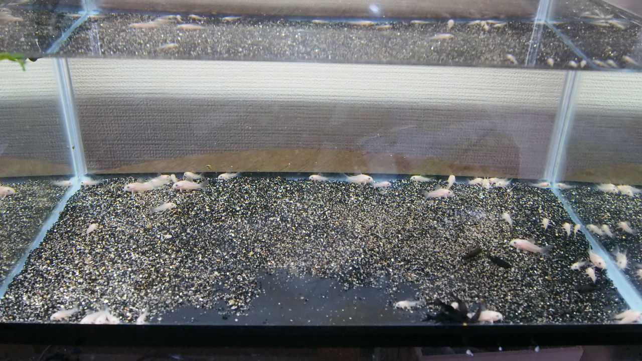 コリドラス稚魚40日目 稚魚とベアタンク水槽のtポジション 再び コリドラス ベアタンク 交尾 稚魚